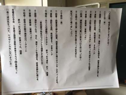 川場移動教室の実地踏査で担任2名が2日間出張です。先生がいなくても、きっときちんと過ごせる5年生です。