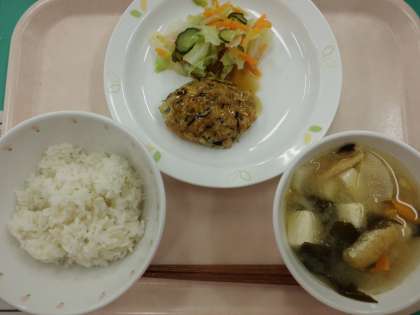 ごはん・牛乳・豆腐のつくね焼き・みそ汁・野菜の甘酢かけ