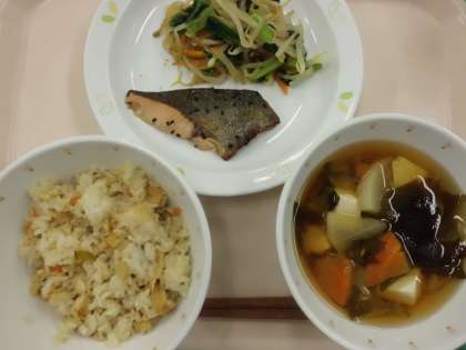 子ぎつねごはん・牛乳・魚の南部焼き・おひたし・とうふのみそ汁