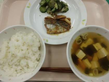 ごはん・牛乳・さばのみそ煮・野菜のゆかりかけ・すまし汁