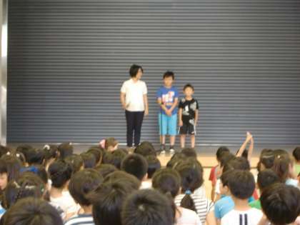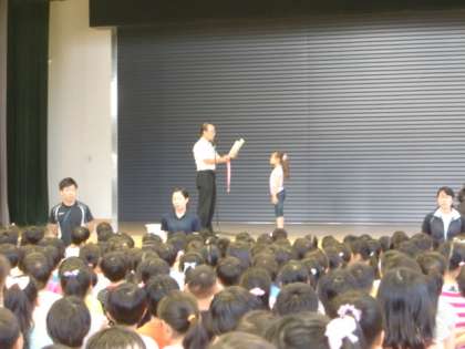 まず、「わんぱく相撲大会」のポスターに応募した児童の表彰がありました。