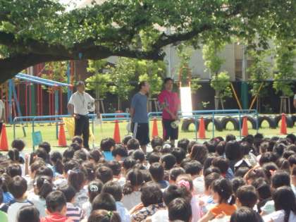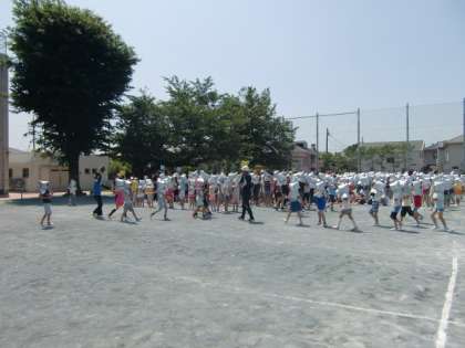 今月は主事室からの出火を想定して、校庭に避難しました。