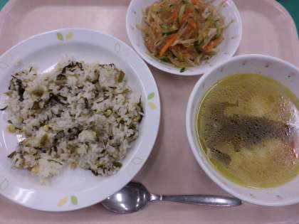高菜とじゃこのチャーハン・牛乳・わかめスープ・バンサンスー