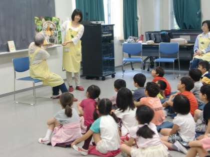 今年度も山の木文庫の方々におはなし会をしていただきます。昨日は1年生が対象でした。