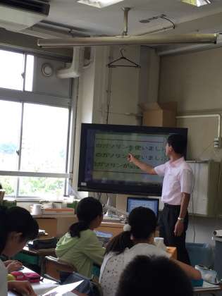 デジタル教科書と電子黒板を活用して、授業を進めています。
