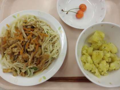 冷し中華・牛乳・じゃがいものカレー風味・くだもの