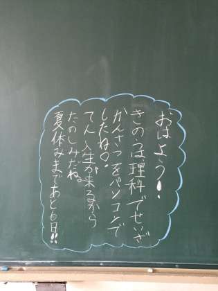 今日は土曜授業日です。4年3組の黒板メッセージです。