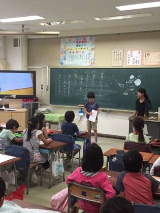 夏休みの自由研究の発表をしています。工夫したところをはなします。