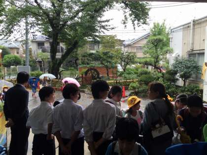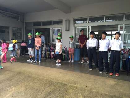 みのりの学び舎の千歳中の校長先生と有志があいさつ運動に加わってくれました。