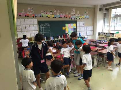 昨日から三日間、上祖師谷中学校の2年生2名が、母校の千歳小学校で職場体験をしています。主事の仕事を体験したり、1年生の面倒を見たり、大活躍です。