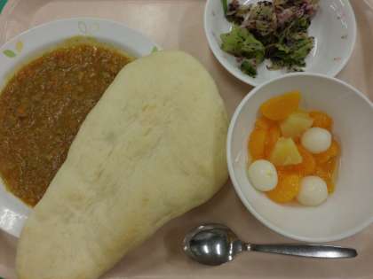 ナンカレー・牛乳・ゆかりあえ・フルーツ白玉