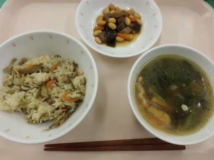 豚肉とごぼうのごはん・牛乳・吉野汁・五目豆