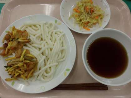 冷やしつけめん・牛乳・あしたばのかきあげ・野菜のカレードレッシング