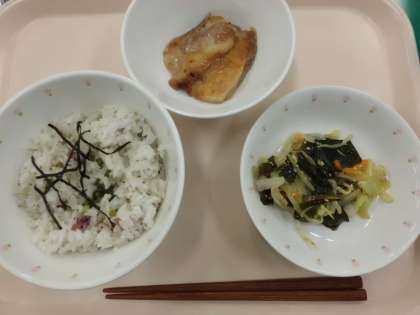 梅茶づけ・牛乳・鶏肉の照り焼き・和風サラダ