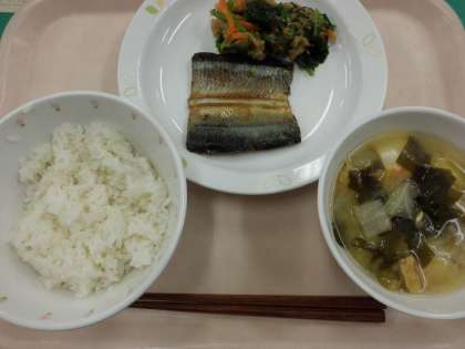 ごはん・牛乳・さんまの塩焼き・わかめのおろし和え・みそ汁