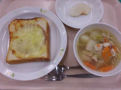 ハムチーズトースト・牛乳・白いんげん豆のスープ・くだもの
