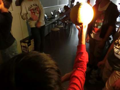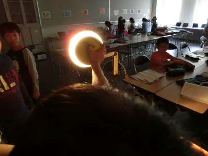 ライトを太陽、ボールを月に見立てることで、月の形が変わって見える仕組みを理解することができたようです。