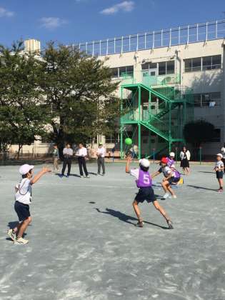 今週は3年生のタッチボールの学習でした。パス、キャッチ、トライの要素が入ったボール運動です。