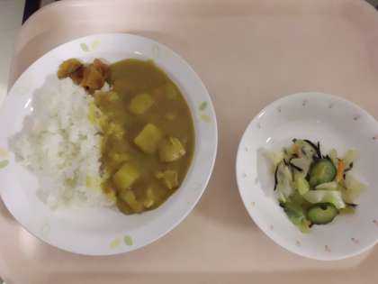 チキンカレーライス・牛乳・福神づけ・海藻サラダ