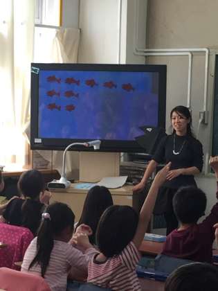 算数の研究員の研究授業です。学習発表会でおなじみの?スイミーの数をいろいろなかけ算の式で表す学習でした。