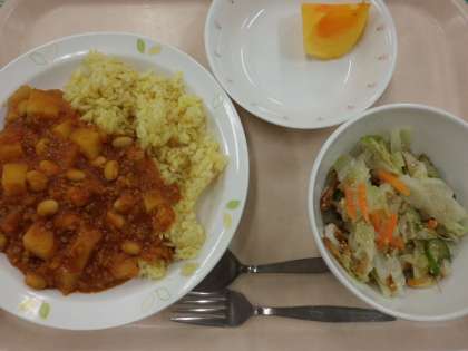 チリビーンズライス・牛乳・ごぼうチップサラダ・くだもの