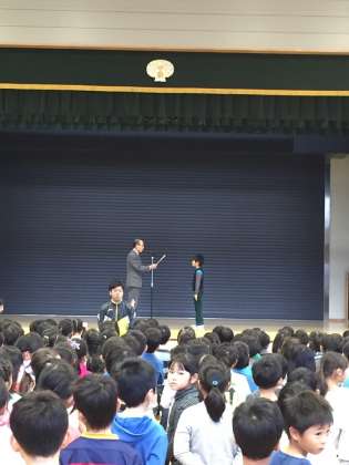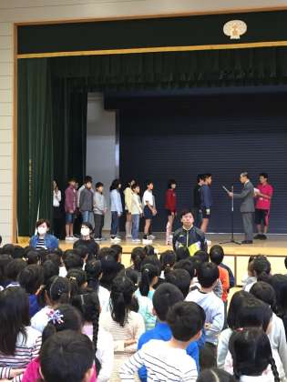 今朝は連合運動会でよい記録を出した児童と水泳の表彰がありました。