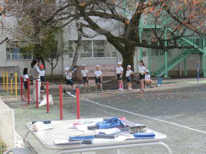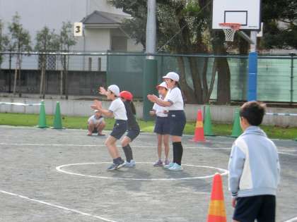 校庭を2つに分けて、1組3組がスペースを上手に使いながらベースボールの授業をしていました。ティー台にボールをのせてバッティングをします。4年生ともなると、大きくボールの飛距離を出せるもんだと感心しました。