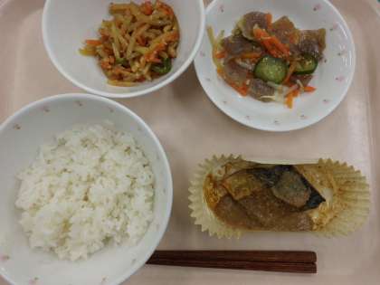 ごはん・牛乳・魚のごまだれかけ・じゃがいものきんぴら・こんにゃくサラダ
