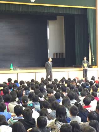 今月は校内に不審者が入ったという想定で、体育館に避難する訓練を実施しました。いつもとは違う内容でしたが、落ち着いて避難することができました。