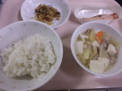ごはん・牛乳・焼き魚・野沢菜炒め・豚汁