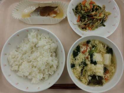 ごはん・牛乳・白身魚の変わりソースかけ・もやしとにらの炒めもの・かきたま汁