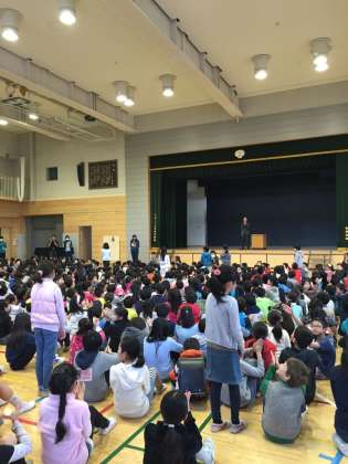 校長先生のお話は、校庭の体育倉庫の天井に穴があいたことの注意喚起でした。