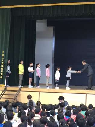 今朝は読書感想文集に出品した児童の表彰を行いました。