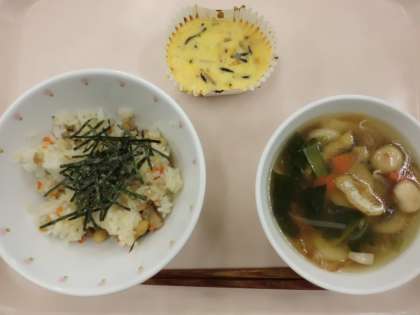 めかぶごはん・牛乳・ひじきとお豆のオムレツ・あんかけ汁