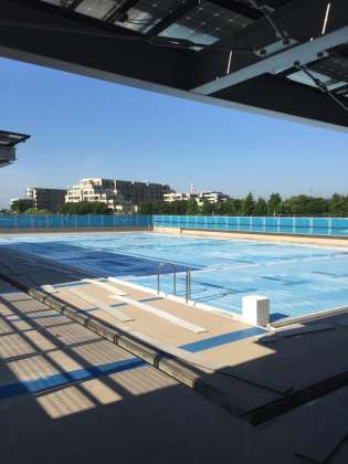 プールの清掃をこれから行います。 床に柱を立てた状態です。