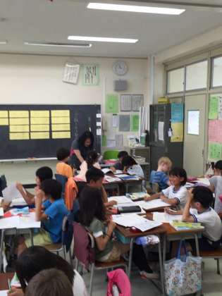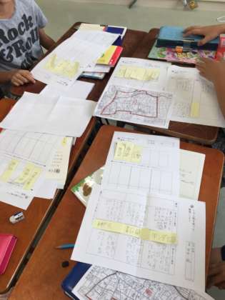 ふせん紙を使って整理しよう。地域にある場所を案内するための話し合いをふせんを使って行っています。