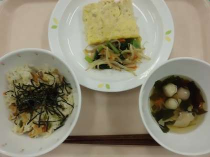 鯛めし・牛乳・たまご焼き・野菜のからしじょうゆあえ・すまし汁