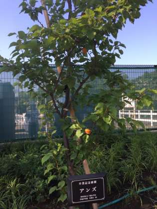 卒業記念植樹のアンズが実を付けています。