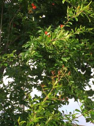 雨が上がりました。校庭のザクロです。花が落ちて、実ができています。