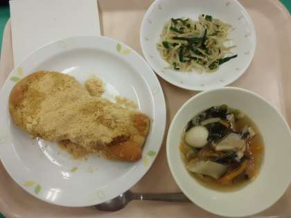 きなこあげパン・牛乳・春雨スープ・もやしのごま風味