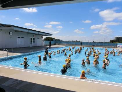 久々に入るプールに歓声が上がります。