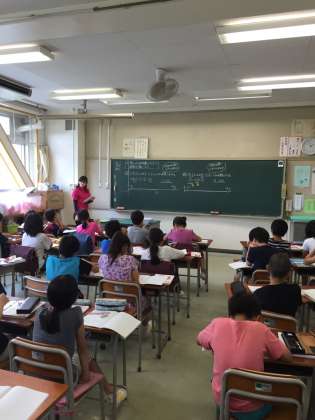 小数のわり算。1より小さい数で割ると答えはどうなるかを考えます。