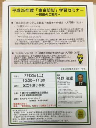 昨年、各世帯に配布された東京防災を元にした学習セミナーを後半で行いました。