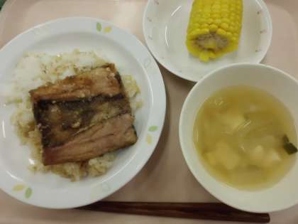 さんまのかば焼き丼・牛乳・とうがんのみそ汁・とうもろこし