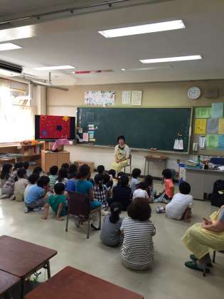 学期末のお楽しみ。今日は1年生の各教室で行いました。