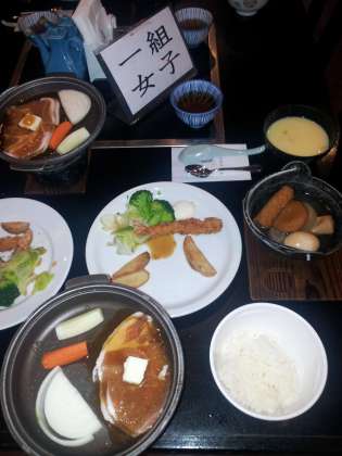 夕食の準備が出来ました。今日は1年の内で一番暑い日だそうです。気温は24〜25度