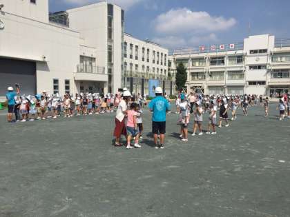 今回は緊急地震速報を聞いて、自分の身を守る訓練を行いました。合言葉は、落ちて来ない、倒れて来ない、移動して来ない場所で、身を守ろうです。