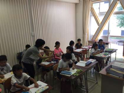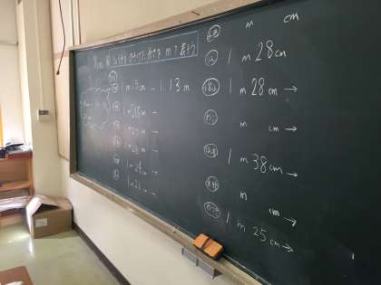 両手を広げた長さを紙テープに移し取って長さを測りました。