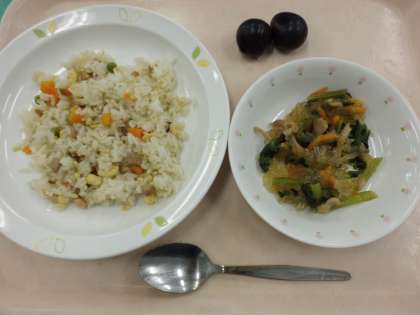 チャーハン・牛乳・春雨入り中華ソテー・くだもの