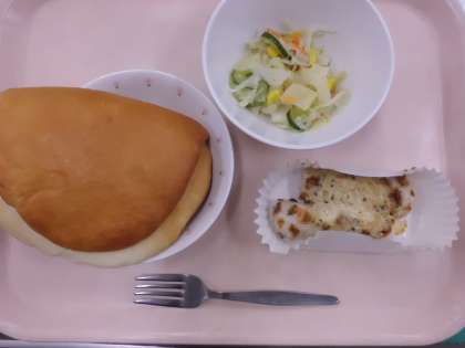 ドライカレーサンド・牛乳・ちくわのマヨネーズ焼き・ポテト入りフレンチサラダ